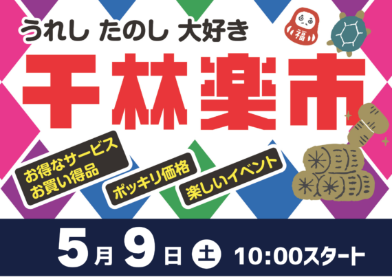 NEWS 新着情報 すべて イベント おすすめ商品 LINE特典 ふれあい館 【予告】第2回千林楽市 5月9…… 千林商店街総力イベント!! …… イベント 2026.03.24 商店街に隠された5つのイースタ…… 懸賞クイズに参加して賞品GET!! …… イベント 2026.03.04 お店とLINE友だちになって、…… 商店街各店とLINE友だちになって、お得に買い物しよう!! …… LINE特典 2026.03.03 千林商店街LINE公式アカウン…… ただいま! 千林商店街LINE公式アカウントの友だち募集を行っています!! …… LINE特典 2026.03.02 今月のふれあい館予定表 地域のコニュニティスペース 【千林ふれあい館】今月の予定 …… ふれあい館 2026.03.02 チャレンジショップ出店者募集中…… 千林商店街での出店を目指しませんか!! …… ふれあい館 2026.02.01 ワークショップ出店者募集中!! 千林ふれあい館でワークショップしませんか!! …… ふれあい館 2026.02.01 もっと見る 各店舗のイベント情報 【予告】第2回千林楽市 5月9…… 千林商店街総力イベント!! …… イベント 2026.03.24 商店街に隠された5つのイースタ…… 懸賞クイズに参加して賞品GET!! …… イベント 2026.03.04 もっと見る 各店舗のイベント情報 おすすめ商品はありません。 お店とLINE友だちになって、…… 商店街各店とLINE友だちになって、お得に買い物しよう!! …… LINE特典 2026.03.03 千林商店街LINE公式アカウン…… ただいま! 千林商店街LINE公式アカウントの友だち募集を行っています!! …… LINE特典 2026.03.02 もっと見る 各店舗のイベント情報 今月のふれあい館予定表 地域のコニュニティスペース 【千林ふれあい館】今月の予定 …… ふれあい館 2026.03.02 チャレンジショップ出店者募集中…… 千林商店街での出店を目指しませんか!! …… ふれあい館 2026.02.01 ワークショップ出店者募集中!! 千林ふれあい館でワークショップしませんか!! …… ふれあい館 2026.02.01 もっと見る 各店舗のイベント情報 千林ふれあい館 2026.03.01 地域コミュニティスペース「千林ふれあい館」2026年3月のイベントのお知らせ 千林ふれあい館 2026.01.30 地域コミュニティスペース「千林ふれあい館」2026年2月のイベントのお知らせ お知らせ 2026.01.01 新年あけまして、おめでとうございます。 過去のお知らせを見る ※左右へスクロールしてご覧ください。