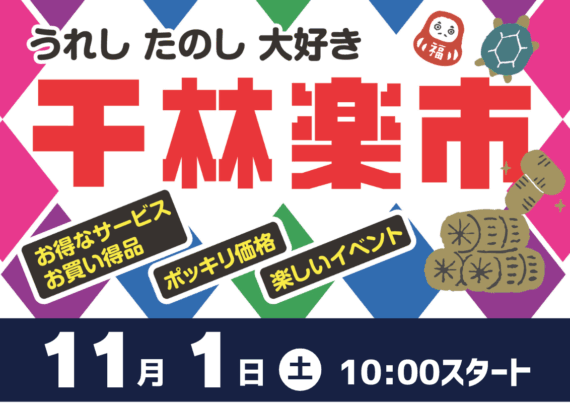 すべて イベント おすすめ商品 LINE特典 ふれあい館 うれし・たのし・大好き!! 千…… 千林商店街の総力イベント!千林楽市11/1㊏開催!! …… イベント 2025.10.01 今月のふれあい館予定表 地域のコニュニティスペース 【千林ふれあい館】今月の予定 …… ふれあい館 2025.08.29 千林商店街LINE公式アカウン…… ただいま! 千林商店街LINE公式アカウントの友だち募集を行っています!! …… LINE特典 2025.04.05 お店とLINE友だちになって、…… 商店街各店とLINE友だちになって、お得に買い物しよう!! …… LINE特典 2025.04.05 チャレンジショップ出店者募集中…… 千林商店街での出店を目指しませんか!! …… ふれあい館 2025.04.01 ワークショップ出店者募集中!! 千林ふれあい館でワークショップしませんか!! …… ふれあい館 2025.04.01 【次回開催】-準備中- LIN…… LINE友だち特典プレゼントキャンペーン開催! …… イベントLINE特典 2025.03.09