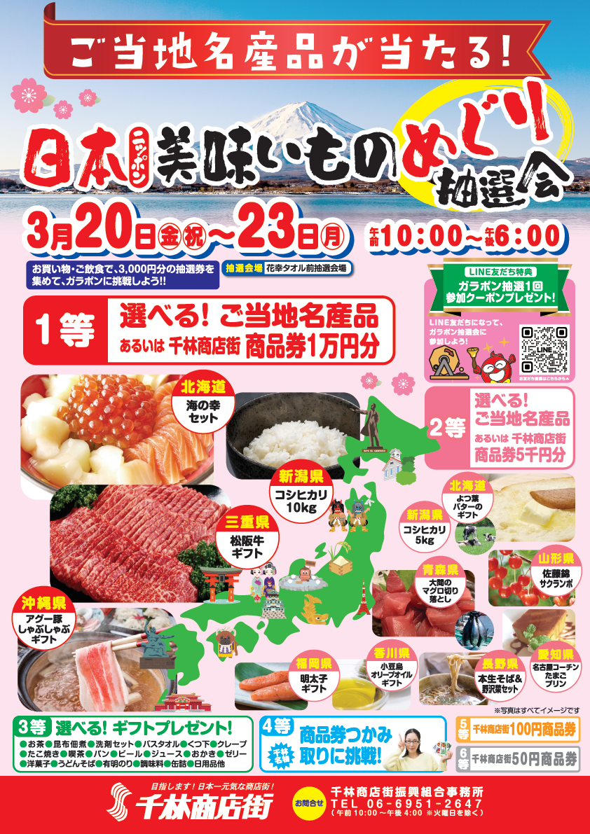 日本(ニッポン)美味いものめぐり抽選会 3月20日㊎㊗~23日㊊開催